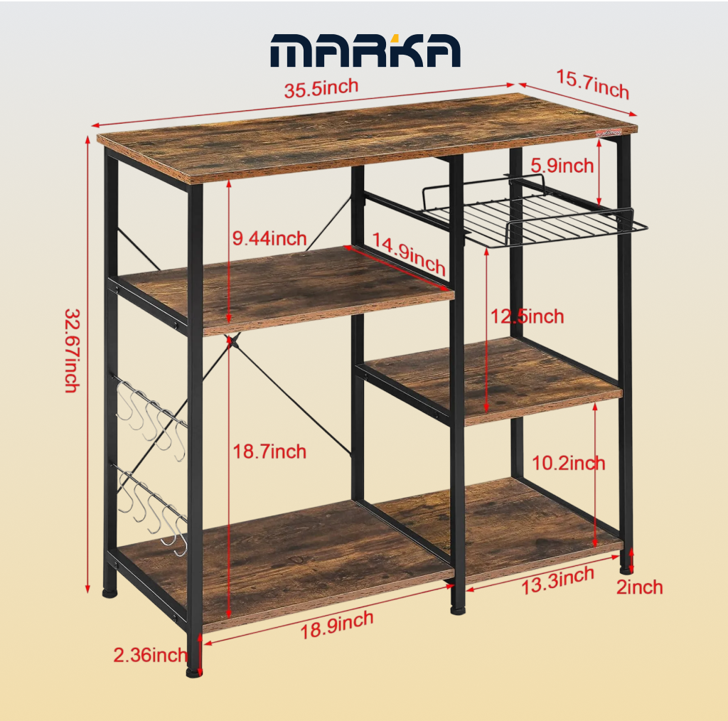 - رفوف متعددة لتخزين الأدوات، الأجهزة الصغيرة، أو المواد الغذائية