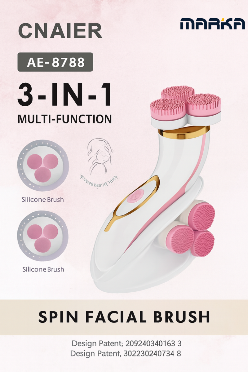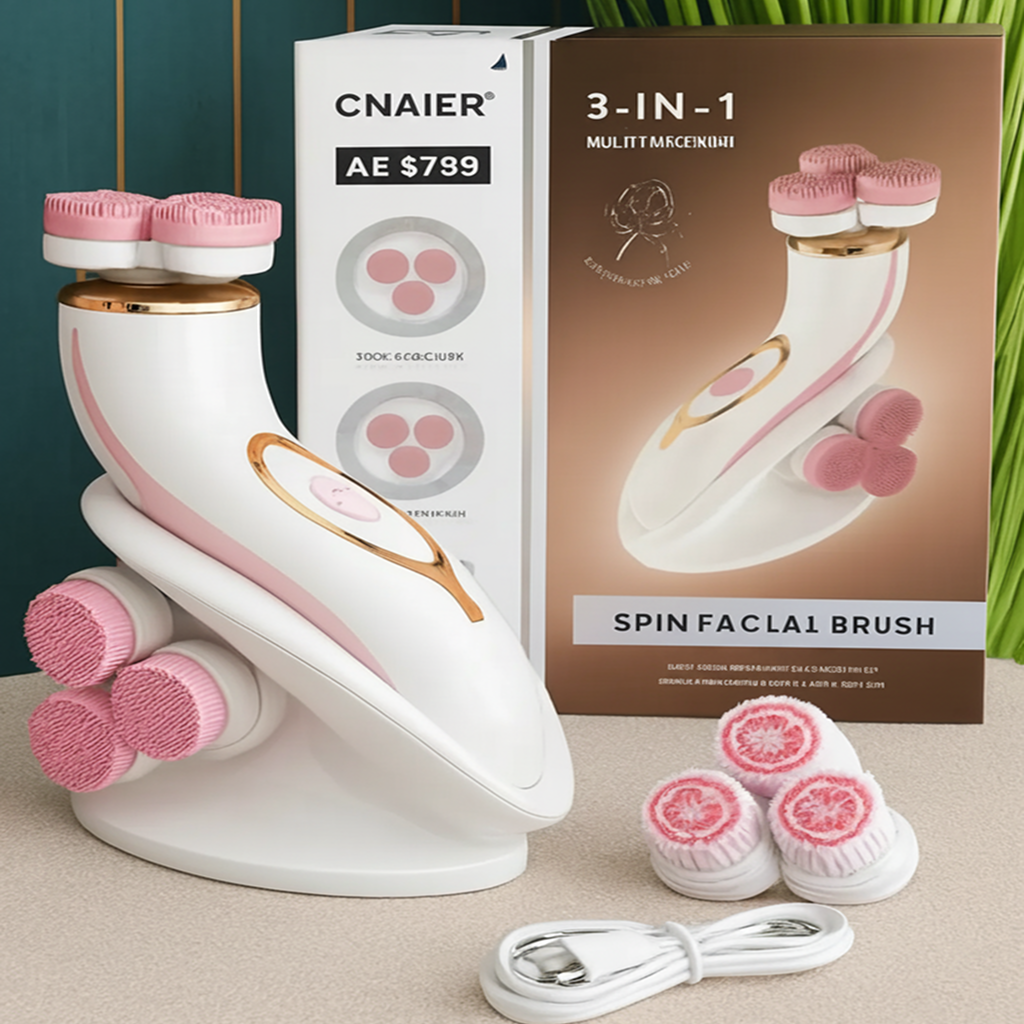 احصلي على عناية متكاملة لبشرتك مع جهاز مساج وتنظيف البشرة 3 في 1 الذي يجمع بين فرشاة تنظيف دوّارة، فرشاة سيليكون ناعمة، وفرشاة تنظيف عميق. يساعد الجهاز على إزالة الأوساخ والدهون والمكياج، وتحفيز الدورة الدموية للحصول على بشرة ناعمة ونظيفة ومتوهجة. يتميز بسرعتين للتنظيف، شحن لاسلكي، وتصميم عملي يناسب الاستخدام اليومي.