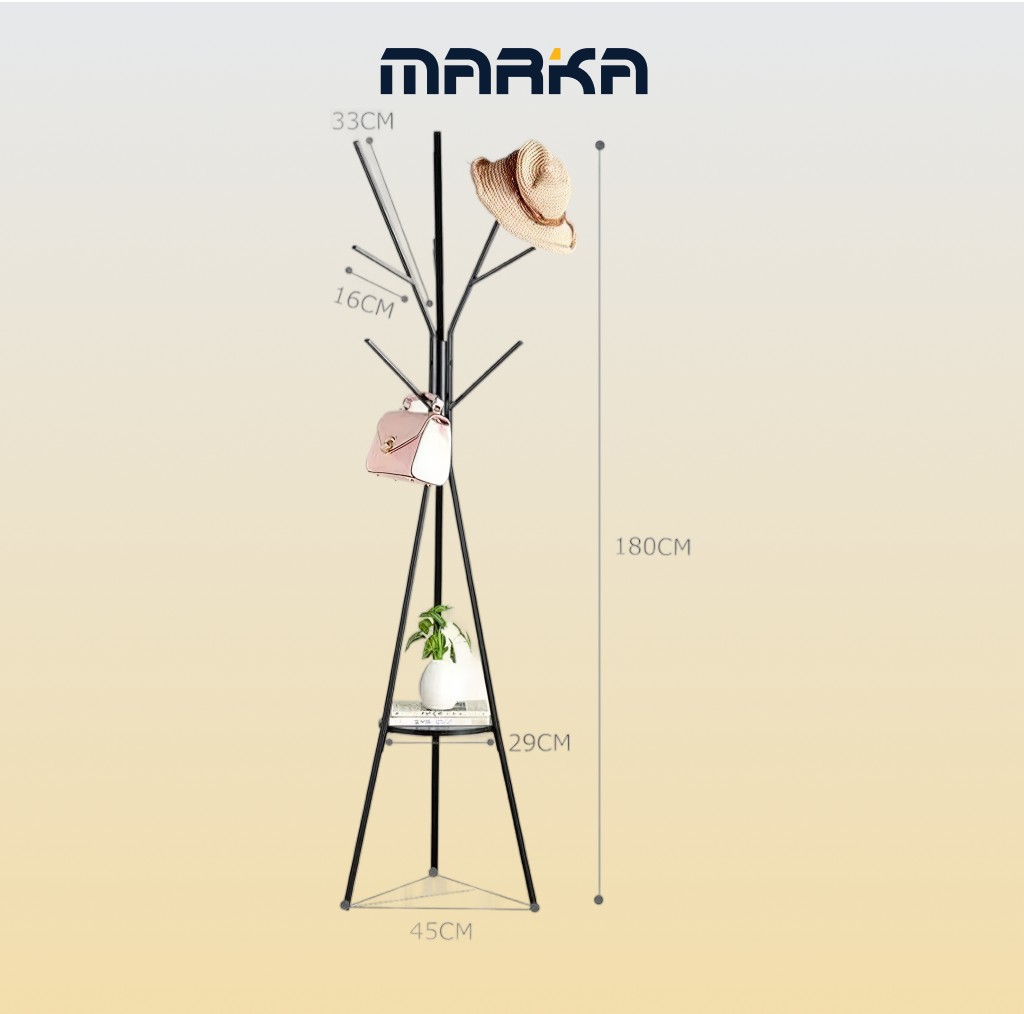 أضف لمسة عملية وأنيقة لمداخل المنزل مع علاّقة المعاطف المعدنية بتصميم الشجرة. تأتي بارتفاع 180 سم مع حامل مدمج للمظلات ورف خشبي أنيق للتخزين الإضافي. يتميز الهيكل بتصميم ثابت وقوي، مما يجعله مثالياً للاستخدام في المكتب، المدخل، الممر، غرفة المعيشة أو غرفة النوم لتنظيم المعاطف، الحقائب، القبعات والمظلات بشكل أنيق ومرتب.