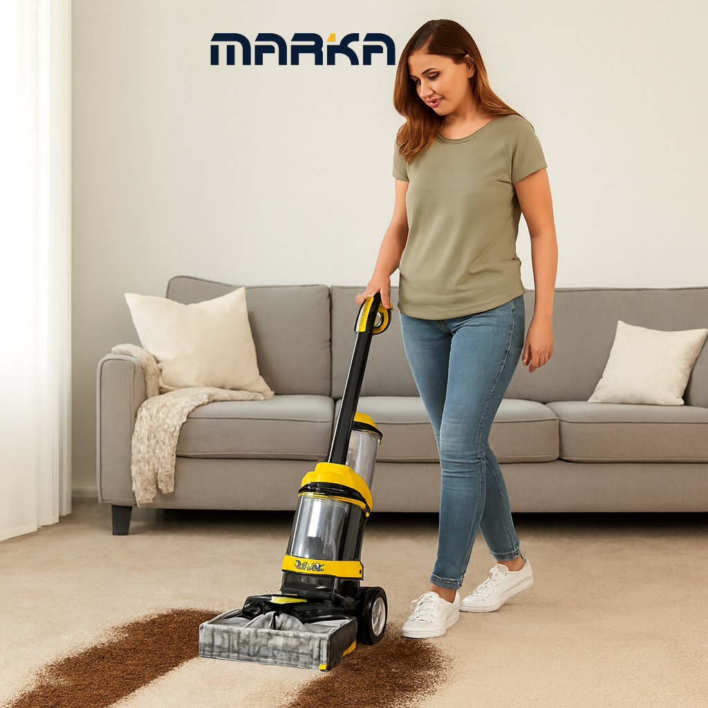 -غسيل عميق وتجفيف: فرشتان دوارتان قويتان لإزالة الأوساخ بفعالية، مع خاصية ذاتية لتنشيف الأقمشة والسجاد بعد الغسيل.