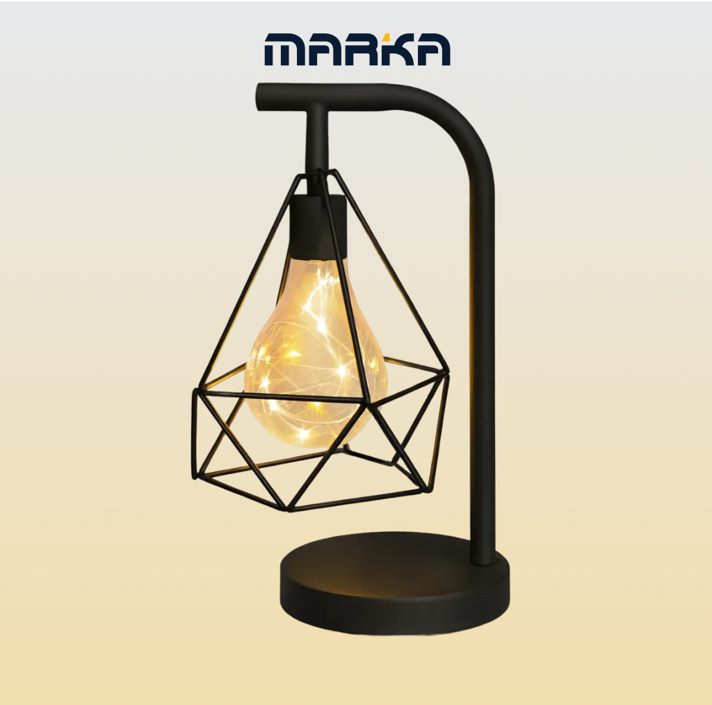 يتميز بهيكل معدني هندسي يحتضن لمبة LED مضيئة تمنح المكان وهجًا دافئًا ومريحًا.