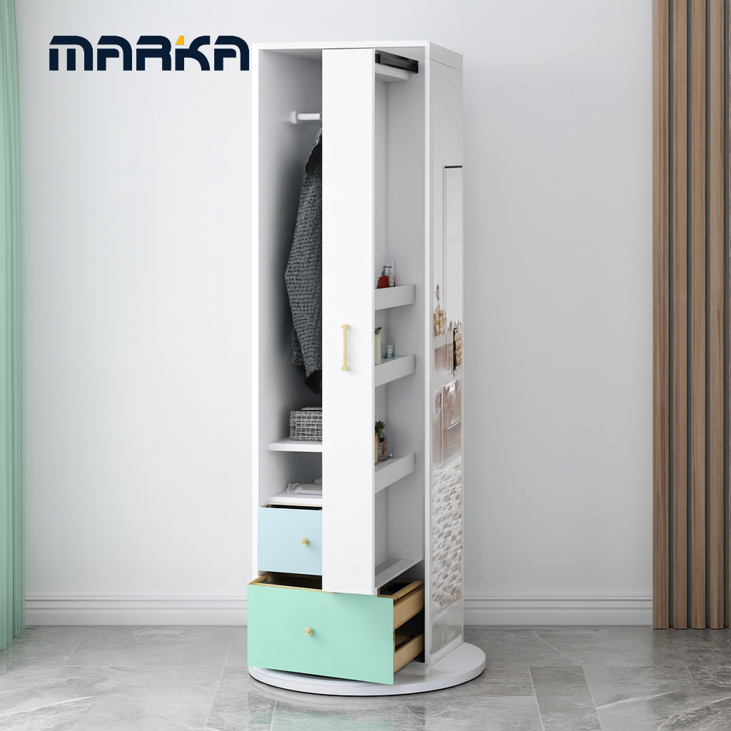 قطعة مبتكرة تجمع بين مرآة قابلة للدوران ومساحة تخزين عملية، لتمنحك حلاً مثالياً لتنظيم الإكسسوارات ومستحضرات التجميل مع توفير المساحة.