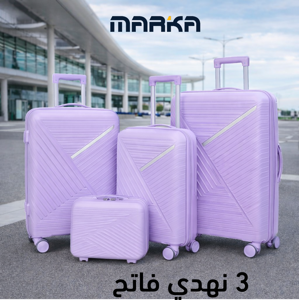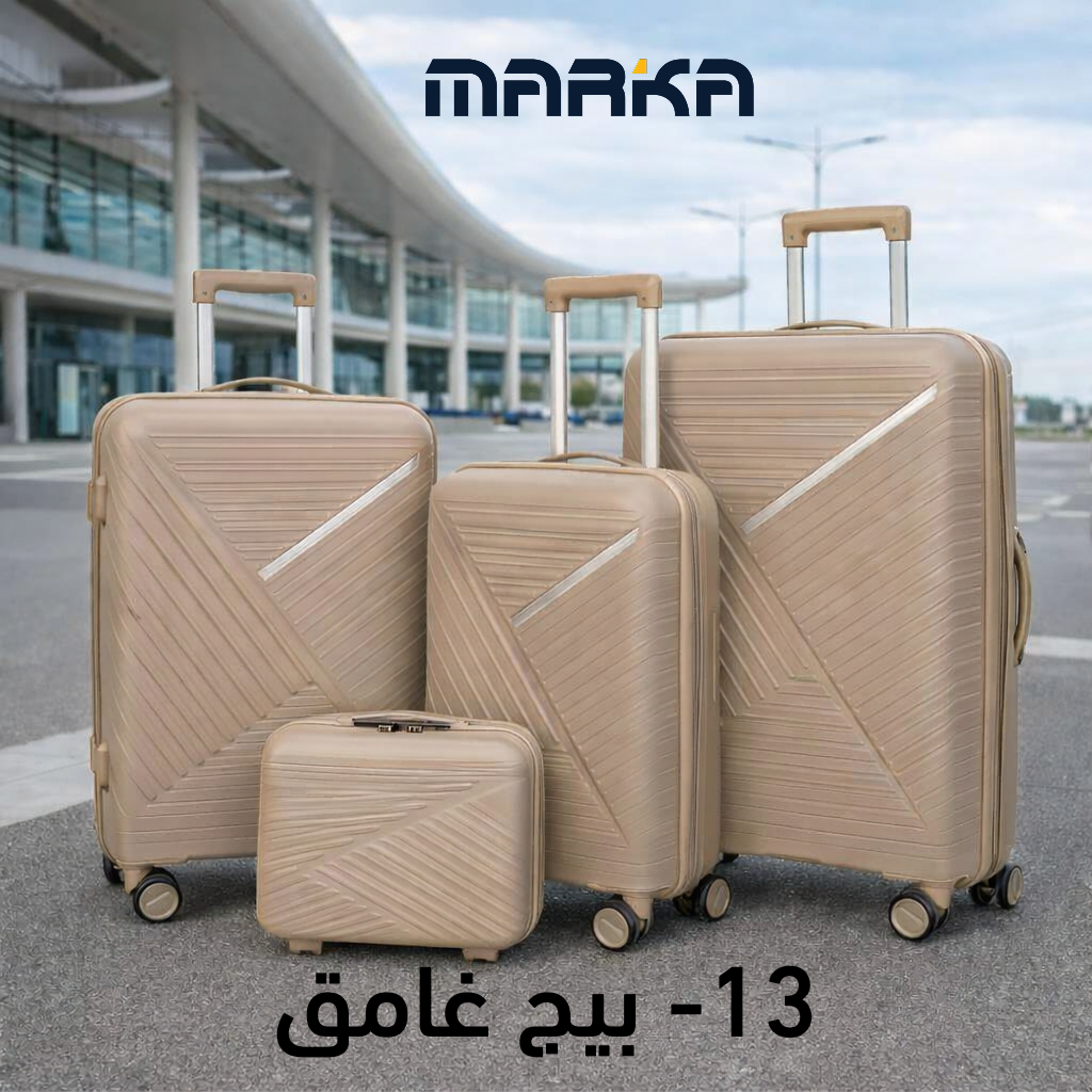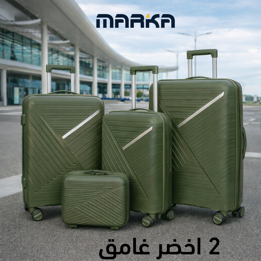 طقم شنط سفر عملي وأنيق مكون من 4 أحجام مختلفة لتناسب جميع احتياجات السفر، من الرحلات القصيرة إلى السفر الطويل. تصميم متين وخفيف يضمن سهولة الحركة والتنقل.