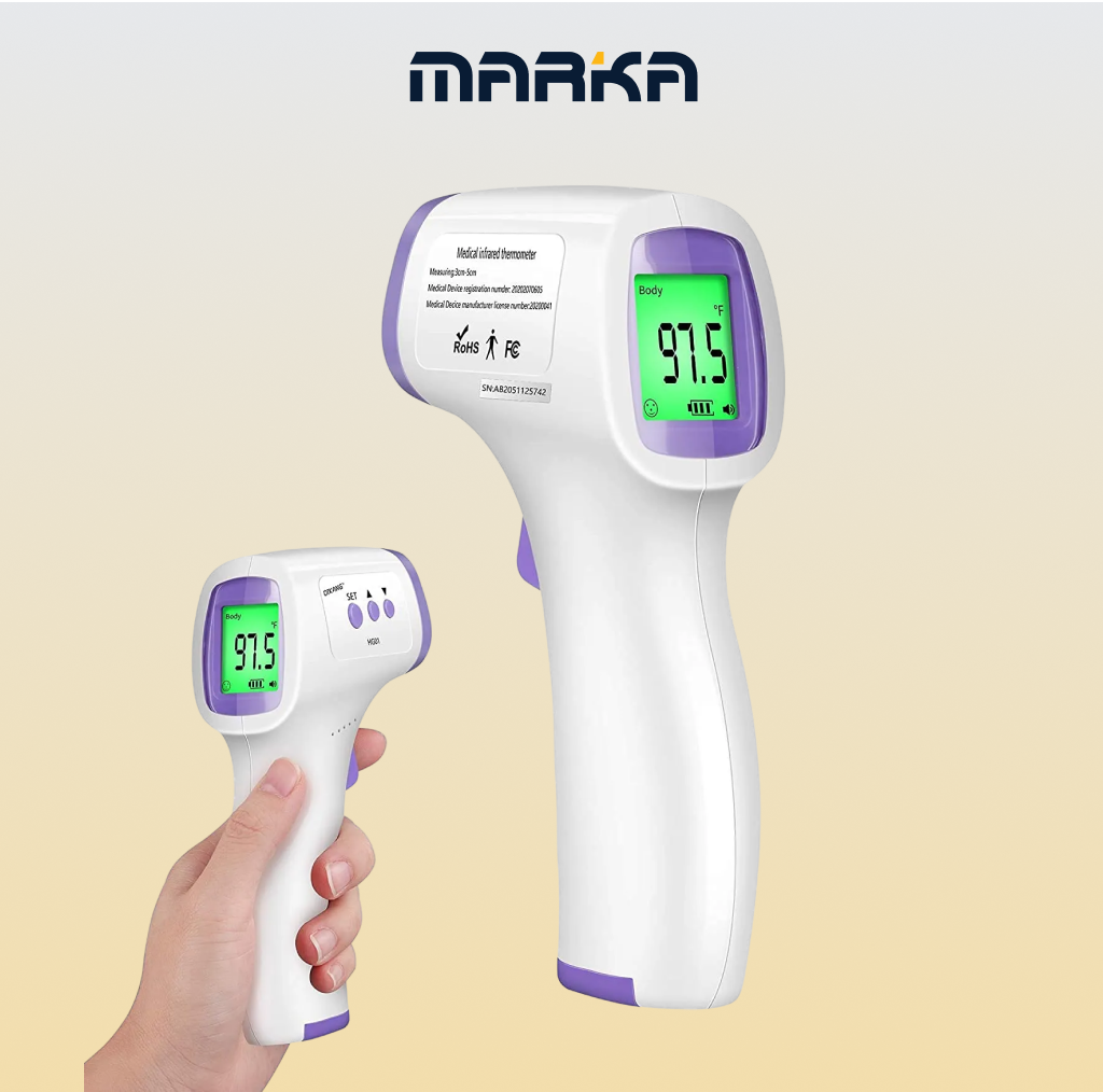 מדחום אינפרא אדום מדויק ומהיר, מיועד למדידת חום הגוף ללא מגע ישיר עם העור, מה שהופך אותו לבטוח והיגייני לשימוש ביתי או רפואי.