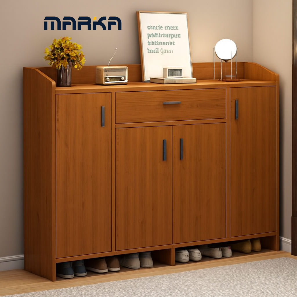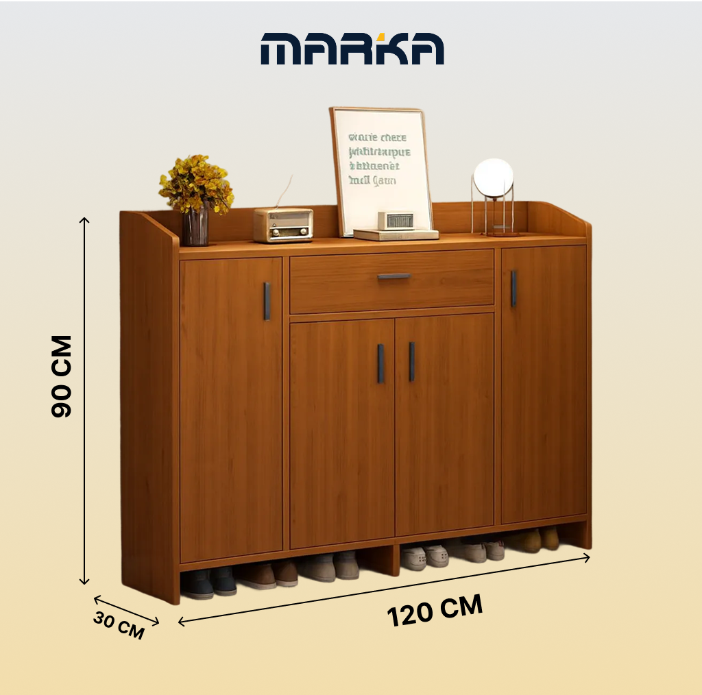 ארון נעליים מסוגנן ומעשי המסייע לכם לארגן את הנעליים שלכם בצורה מסודרת וחוסך מקום. הוא כולל עיצוב מודרני המשלים סגנונות עיצוב שונים, יחד עם מגירה עליונה ומדפים פרקטיים לאחסון נוסף.