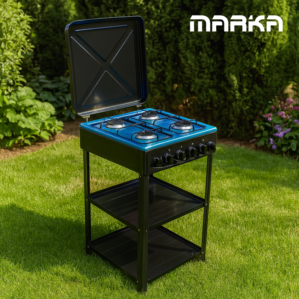 כיריים גז פרקטיות בעיצוב אירופאי מסוגנן, מצוידות בארבעה מבערים יצוקים איכותיים לפיזור חום אחיד וביצועים אמינים, מתאימות הן למטבחים ביתיים והן למטבחים חיצוניים.