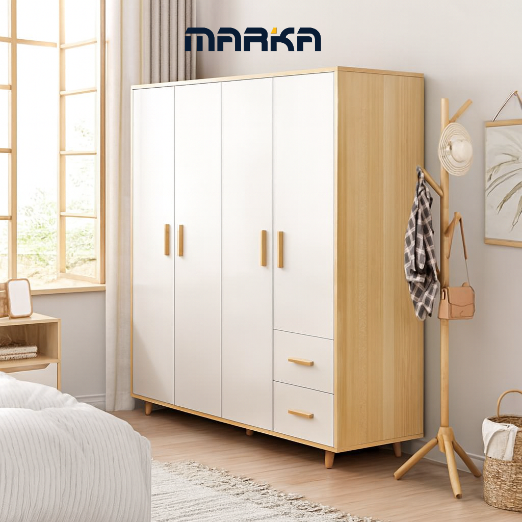 ארון בגדים מודרני בעיצוב מינימליסטי ומעשי, מושלם לארגון בגדים ואביזרים עם נגיעה מסוגננת המשלימה סגנונות עיצוב מודרניים שונים.