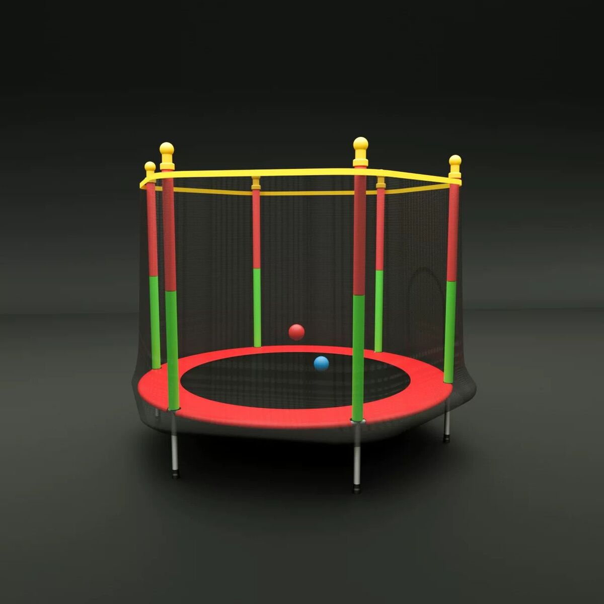 اطلق الطاقة الإيجابية مع ترامبولين المرح الملوّن بألوان نابضة بالحياة (أحمر، أصفر، أزرق، أخضر) ليمنح أطفالك تجربة ممتعة وآمنة!