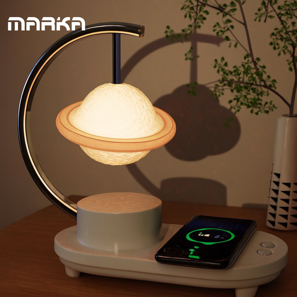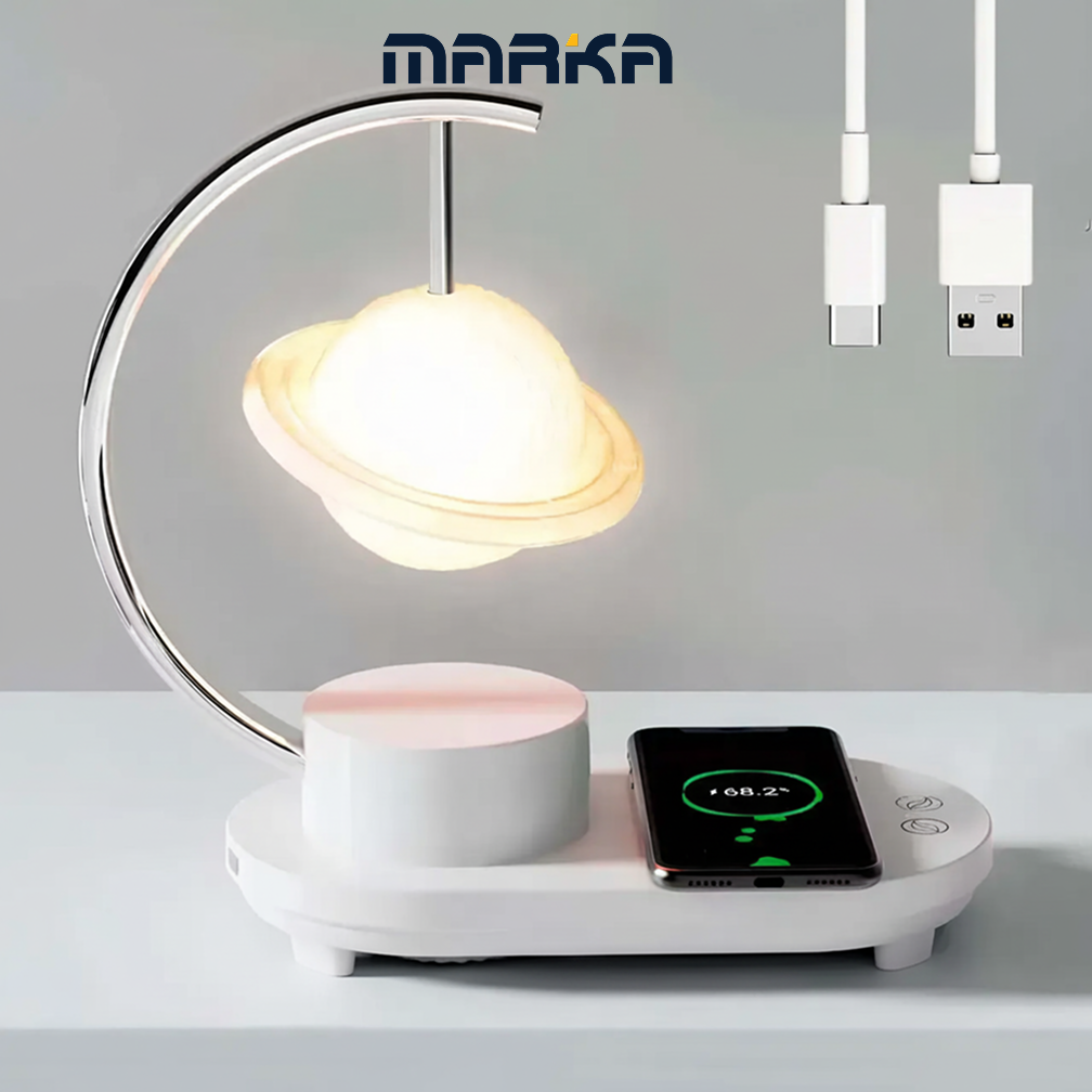 المصباح يجمع بين الإضاءة الدافئة، الشحن اللاسلكي، ومكبر صوت يعمل بتقنية البلوتوث – تصميم مبتكر يجعله الخيار المثالي لغرفة النوم، المكتب، غرفة المعيشة أو الطاولة الجانبية.