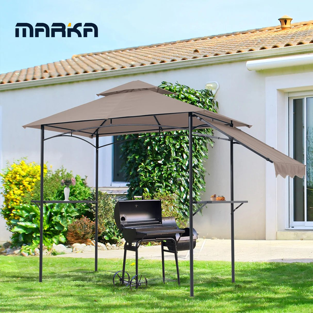 - امتداد جانبي مزخرف: مظلة إضافية بحافة مموجة تضيف لمسة جمالية وتزيد من مساحة الظل