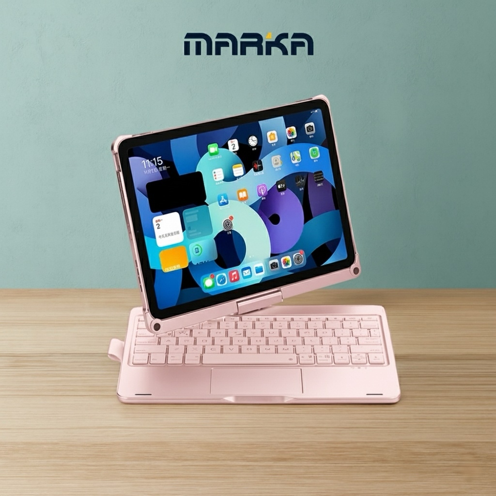 حوّل الآيباد إلى لابتوب عملي مع لوحة مفاتيح لاسلكية مدمجة بجراب حماية دوّار، توفر مرونة كاملة في الاستخدام مع تصميم أنيق وخفيف.