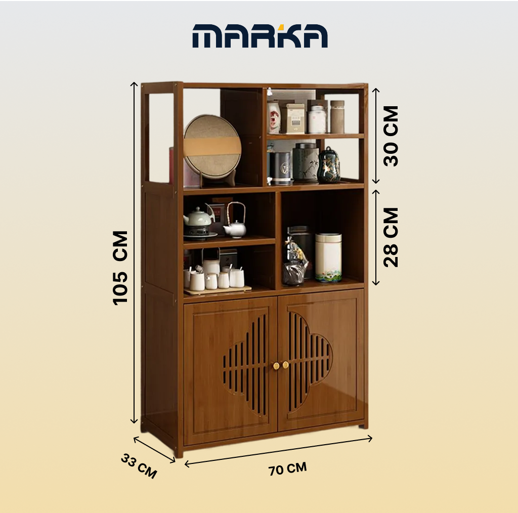 خزانة مطبخ أنيقة مستوحاة من الطراز الجديد، تجمع بين الجمال الطبيعي والعملية. مثالية لتنظيم أدوات الشاي، الأواني، أو مستلزمات المطبخ، مع تصميم أرضي ثابت يضفي لمسة فاخرة وهادئة على المكان.