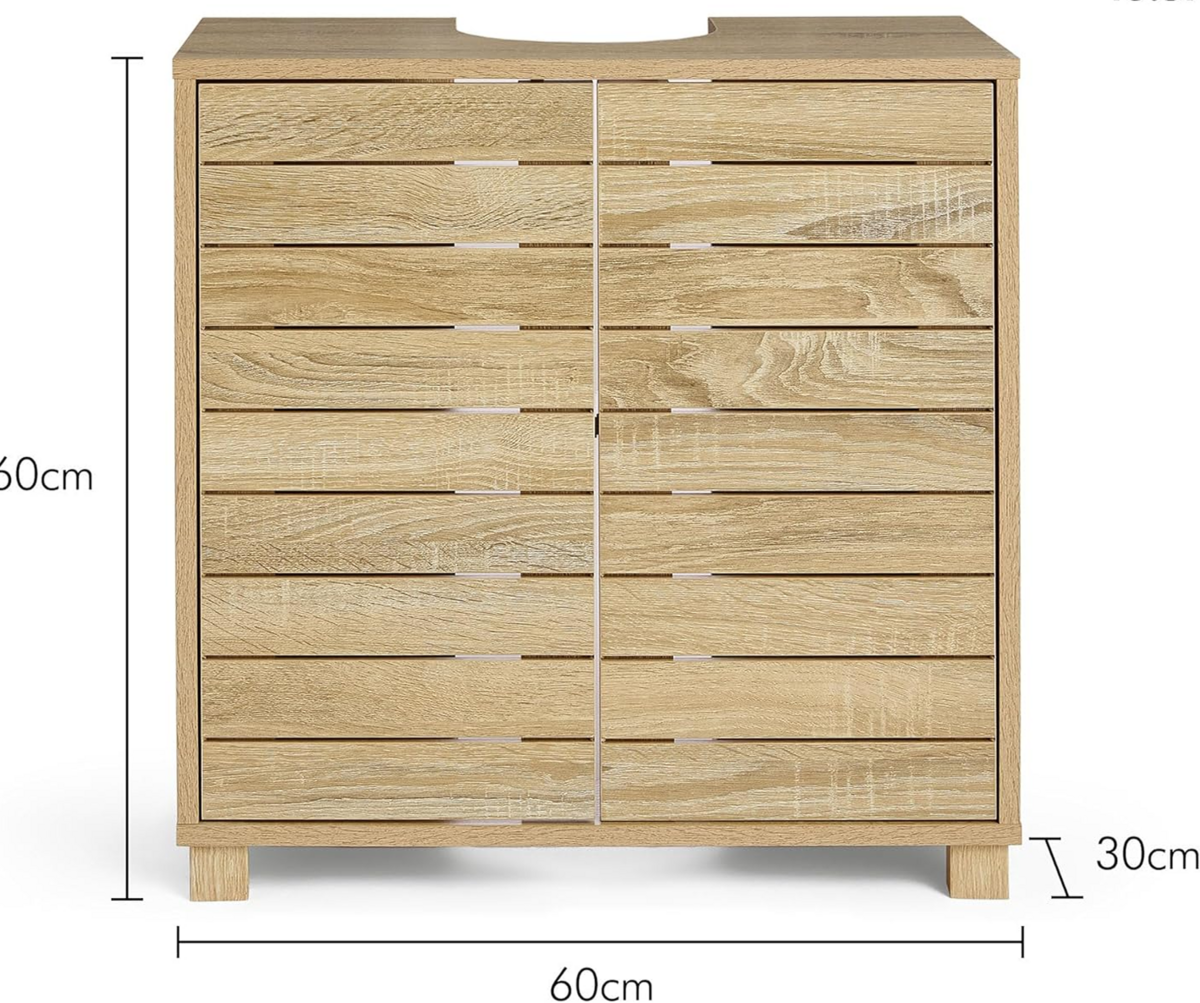 خزانة عملية وأنيقة مصممة لاستغلال المساحة أسفل المغسلة بشكل ذكي، مع تصميم بدون مقابض يمنح حمامك مظهرًا عصريًا ومنظمًا.